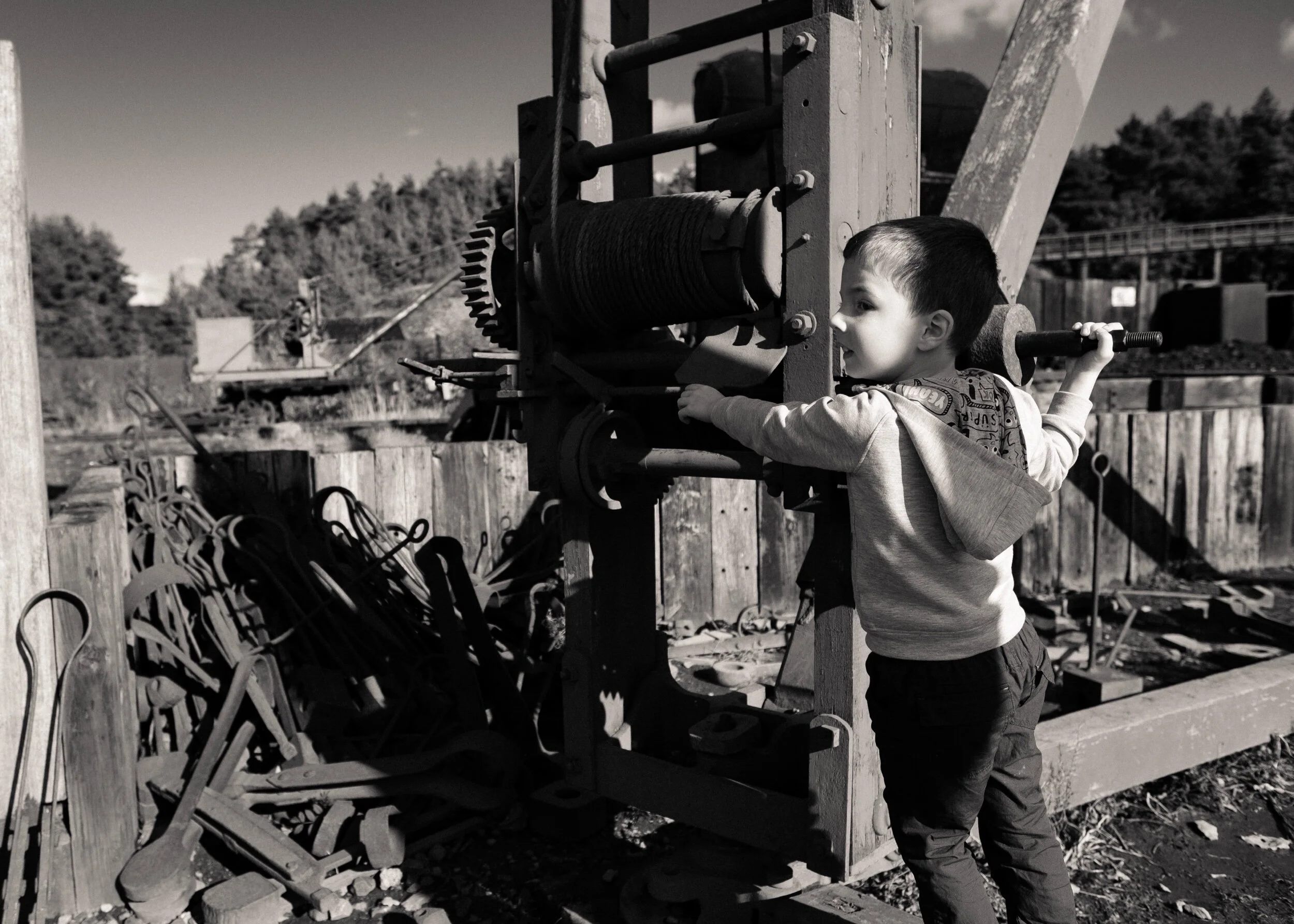 By lunch time, there was glorious sunshine. This had certainly not been forecast. We explored the pit village. Whilst James took mummy down the mine, I nipped back to the car to get the lunch. Grandad and I had done the food trail the day before and I had picked up some very tasty pork pies which we all devoured for lunch.
